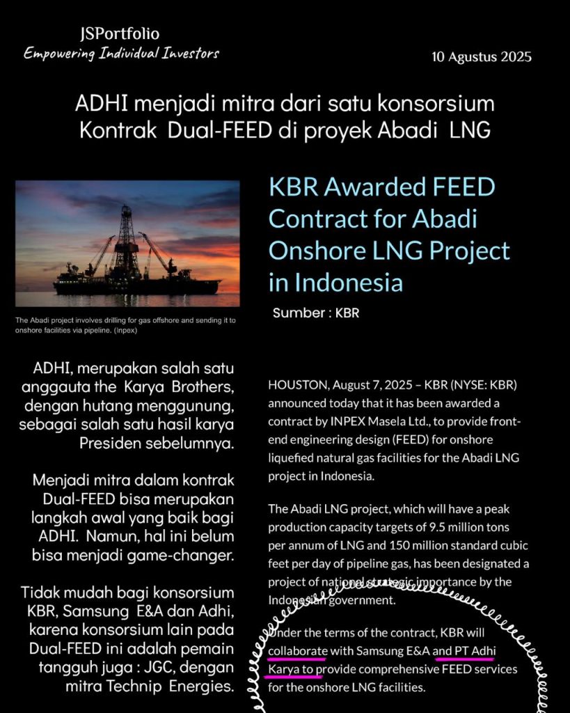 10 Agustus 2025: ADHI menjadi mitra Dual Feed Proyek Abadi LNG